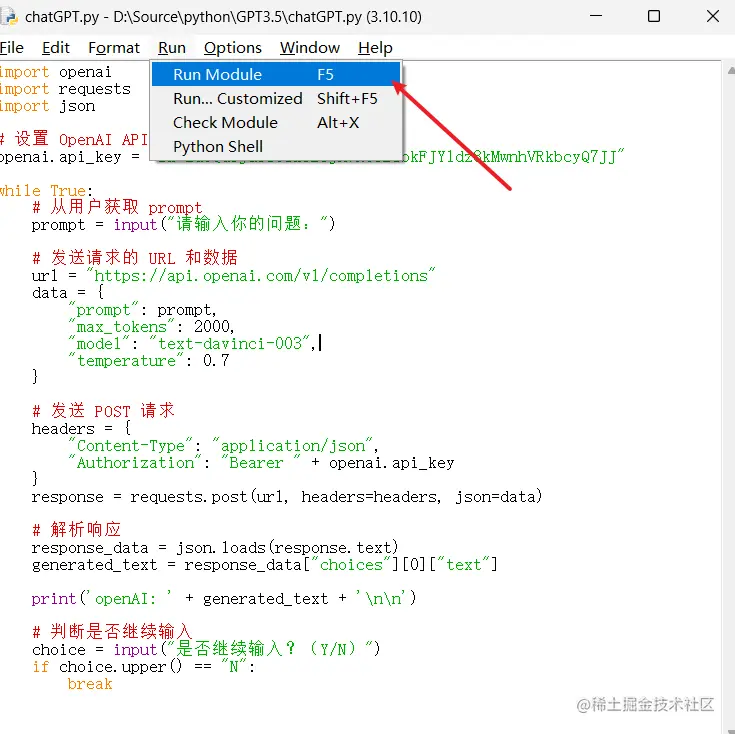 openai.api_key = "这里填上你刚才申请的秘钥"