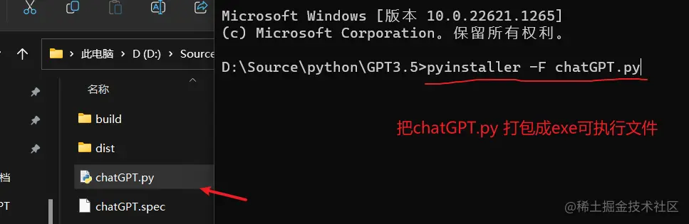 会在目录生成 dist 文件夹,exe文件就在这个文件夹中,双击文件就能运行程序,也可以发给别人使用