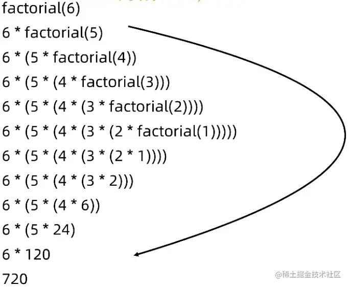 递归调用的实现: