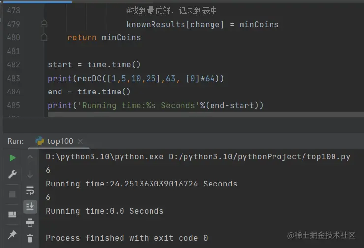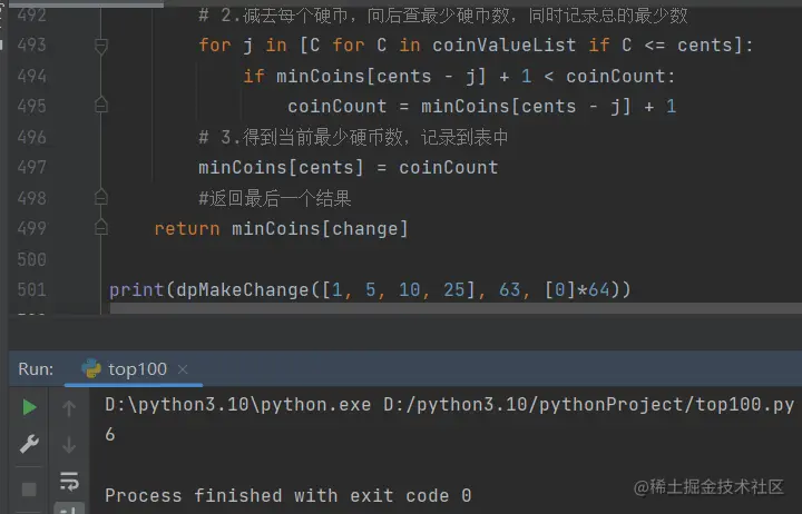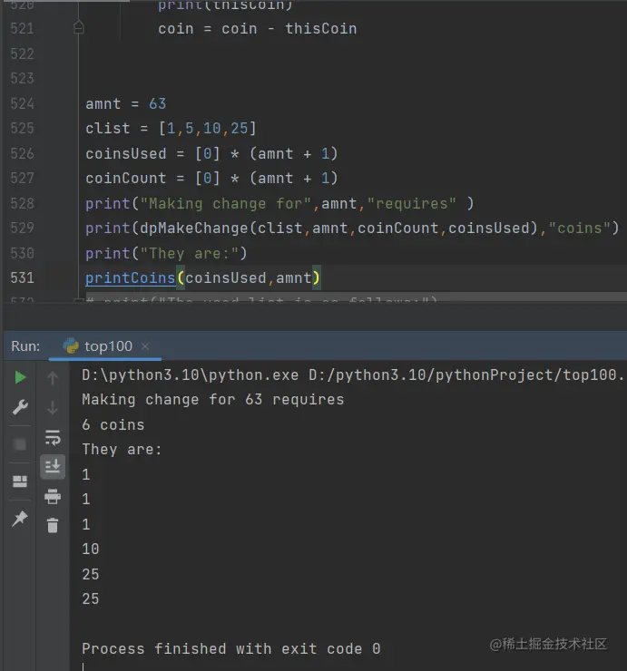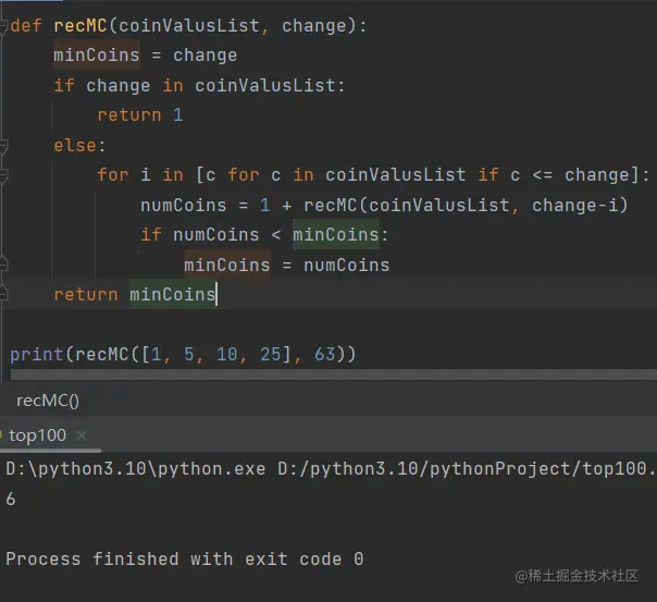 我们注意到动态规划算法的dpMakeChange并不是递归函数,虽然这个问题是从递归算法开始解决,但最终我