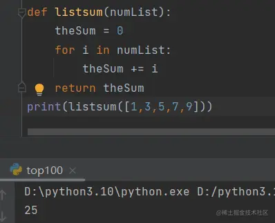 由于列表中数的个数不定,需要一个循环和一个累加变量来迭代求和