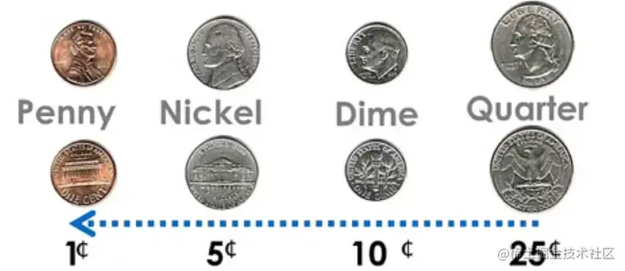 - 在找零递加的过程中,设法保持每一分钱的递加都是最优解,一直加到求解找零钱数,自然得到最优解