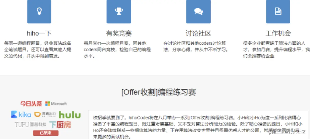 该网站是由原北大POJ团队所开发。在该网站上经常会有一些知名大厂举办编程比赛,例如:微软,百度,腾讯,网易等等,该比赛风格与ACM类似。