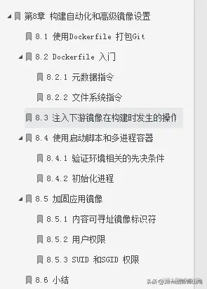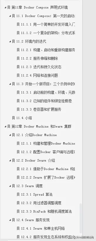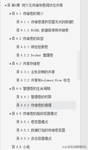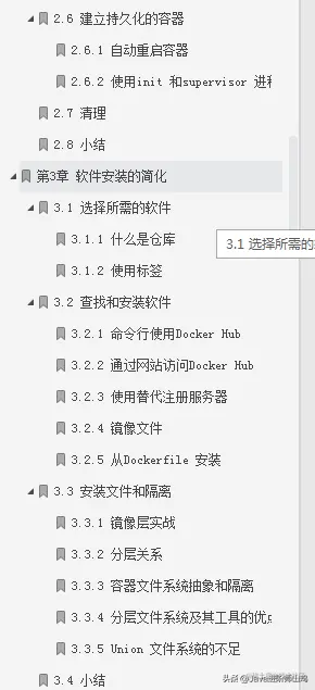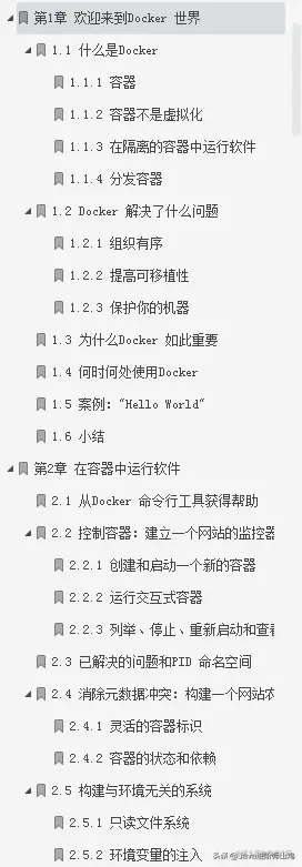 由于文档内容过多,为了避免影响到大家的阅读体验,在此只以截图展示部分内容,详细完整版的Docker实战文档或娶方式见文末!
