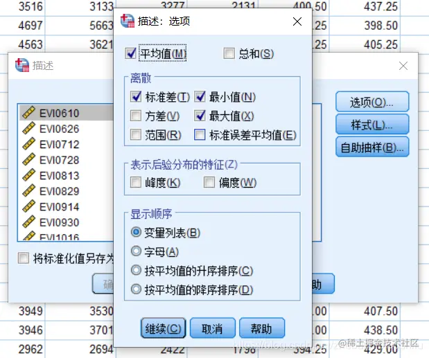 此外,同样的统计指标计算,还可以通过“分析”→“描述统计”中选择“描述”加以实现。