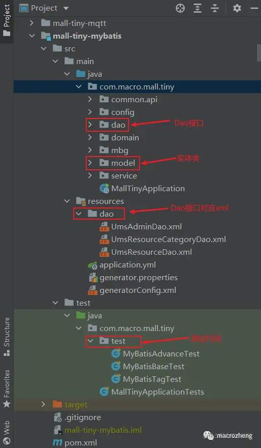 本文示例使用了mall-learning项目中的mall-tiny-mybatis模块代码,具体项目结构如下。