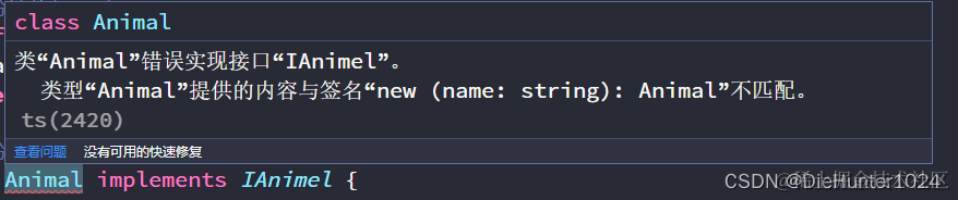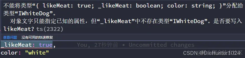 上述代码会抛错:IAnimel 和 IDog 类型的命名属性 likeMeat 不完全相同