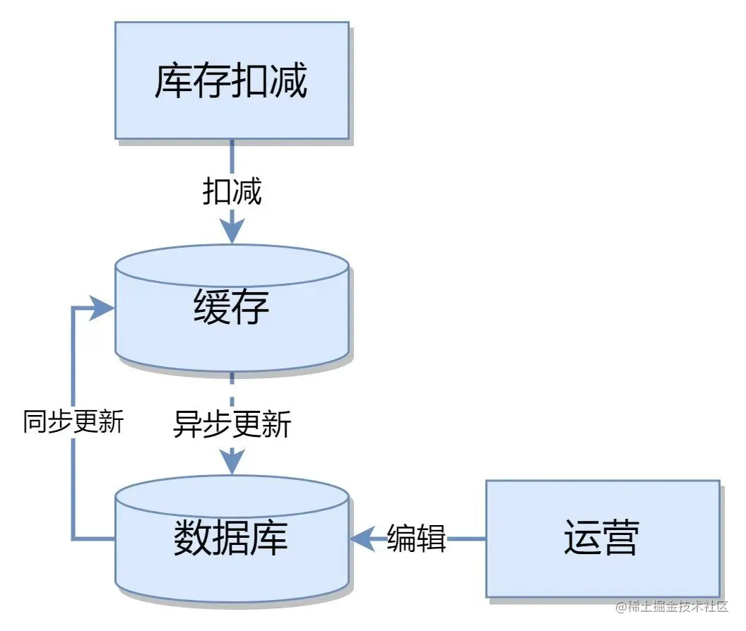 在redis中扣减库存虽然性能高,可以大大减轻数据库压力,但需要保证缓存数据能完整、正确的入库,以保证最终一致性。