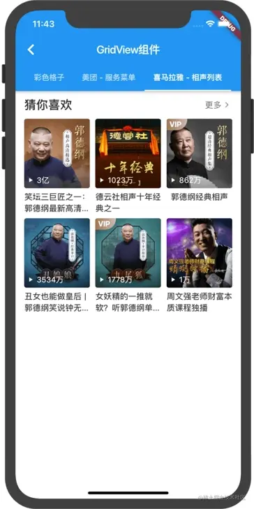 再来看一个模仿喜马拉雅中相声列表用到 GridView.builder 创建网格布局的具体例子(相声卡片的代码可以看这里):