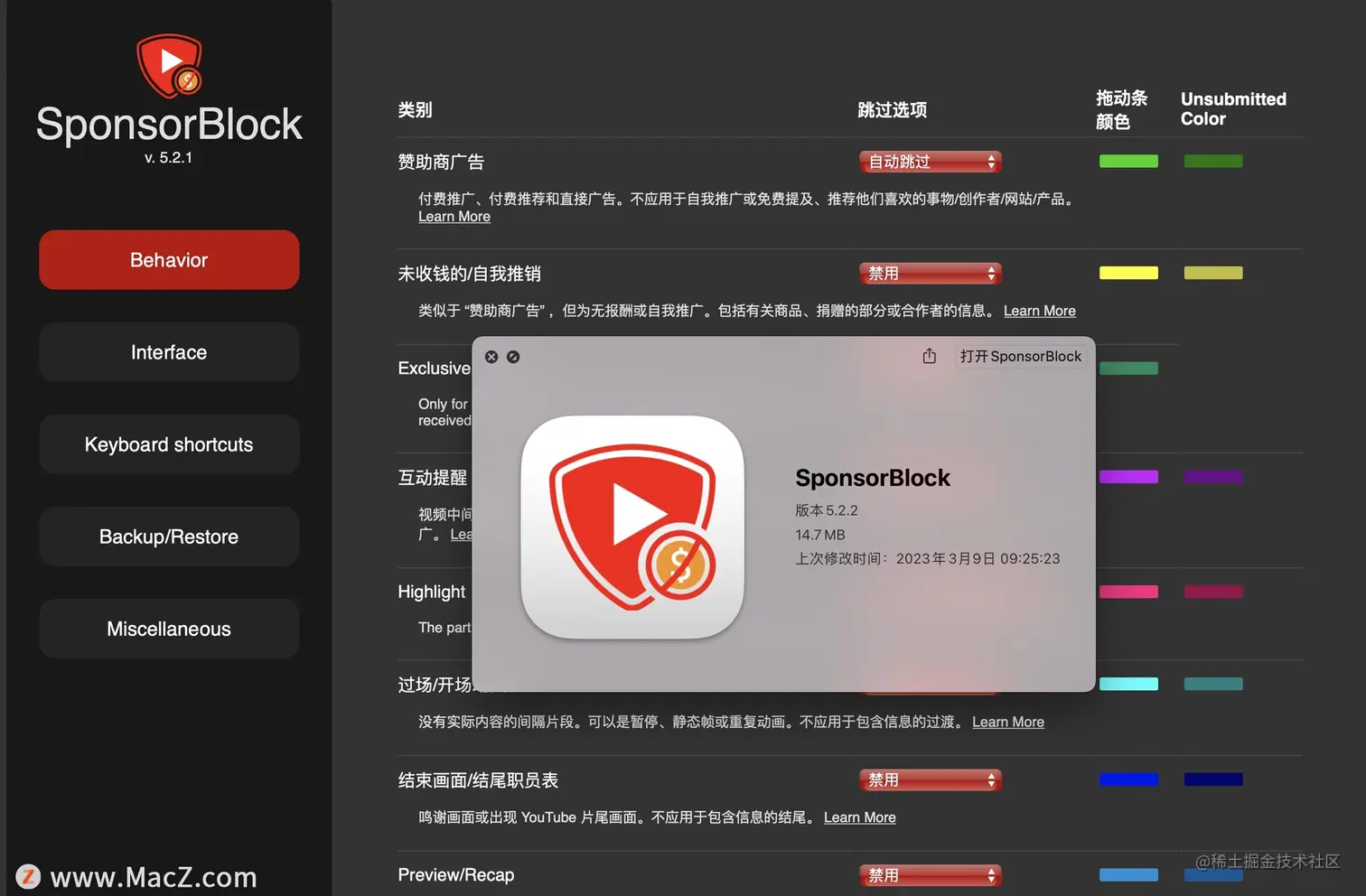 YouTube订阅广告拦截工具,SponsorBlock for YouTube for mac 用户8079406090912 2023-03-10 425 阅读1分钟 如果您在使用YouTube观看视频时常常会被烦人的广告、片头、片尾以及赞助内容打断观感,那么SponsorBlock将会是您的最爱。它可以在不影响视频内容的情况下自动跳过这些干扰因素,让您的观影体验更加流畅。 下载:SponsorBlock for YouTube for mac