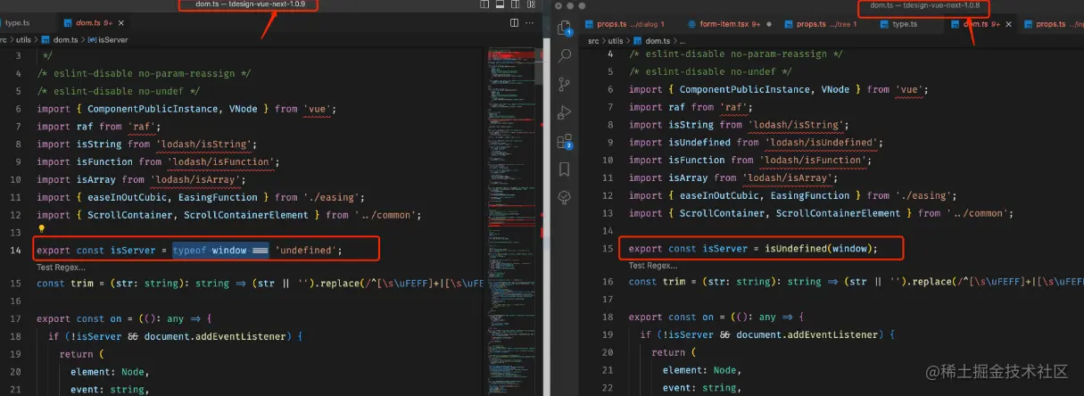 ssr相关enhance增强已配置但仍出现,定位到错误位置如上图。于是乎查看源码。比对不同版本区别(1.0.5之前打包ok, 升级到1.0.8出现)