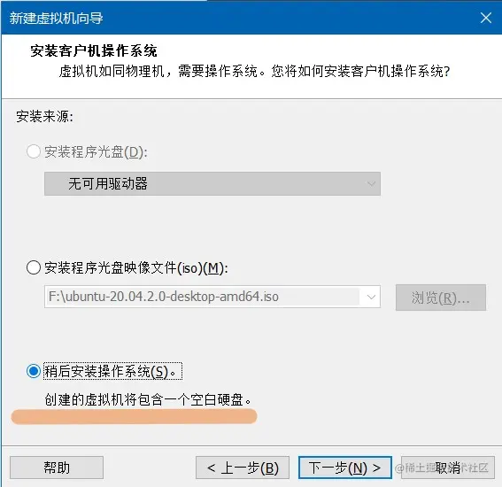 下面开始进行Ubuntu的安装,打开Vmware Workstation,选择创建一个新的虚拟机,然后按下面图示进行操作即可,无需切换到u盘安装模式。