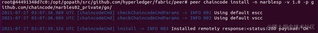 export CORE_PEER_ADDRESS=peer1.org2.example.com:10051 peer chaincode install -n marblesp -v 1.0 -p github.com/chaincode/marbles02_private/go/