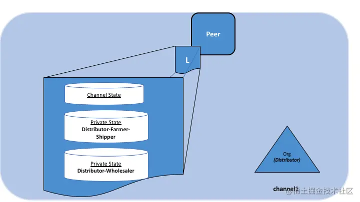 拿上述例子来说,分销商拥有的节点在其账本储存了多个私有数据库,这些数据库中包含了来自分销商、农民和托运商关系以及分销商和批发商关系的私有数据。