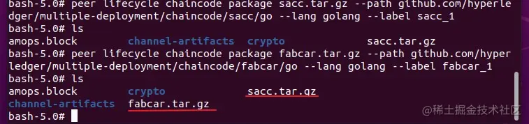 peer lifecycle chaincode package sacc.tar.gz --path github.com/hyperledger/multiple-deployment/chaincode/sacc --lang golang --label sacc_1
