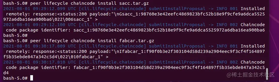 4.2.10 打包并安装链码