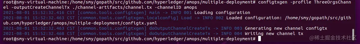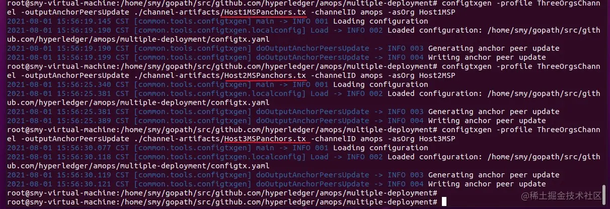 4.2.5 生成加密材料、证书和创世区块、通道交易配置和锚节点更新文件