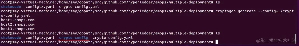 在服务器1 的multiple-deployment文件夹下新建crypto-config.yaml文件和configtx.yaml文件(证书密钥和交易配置文件),用于生产证书、密钥、创世区块等文件(注:服务器2、3不用建这两个文件)