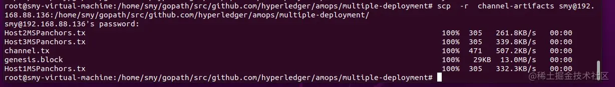 scp sacc.tar.gz smy@192.168.88.136:/home/smy/gopath/src/github.com/hyperledger/amops/multiple-deployment