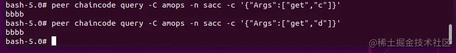 peer chaincode query -C amops -n sacc -c '{"Args":["get","d"]}'