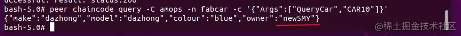 peer chaincode query -C amops -n fabcar -c '{"Args":["QueryCar","CAR10"]}'