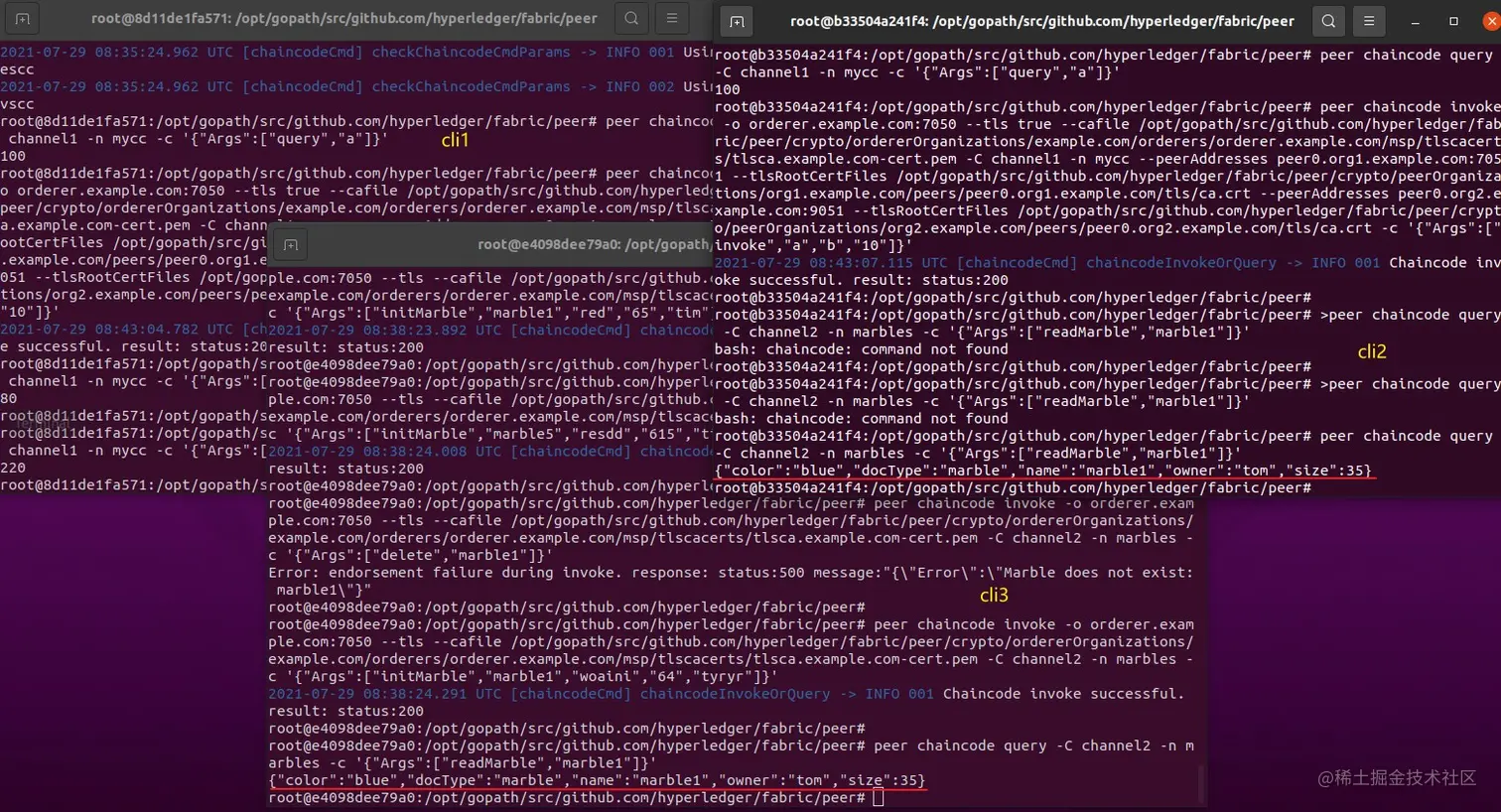 进入cli1默认身份为peer0.org1.example.com