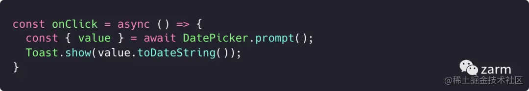 首先,我们对所有弹层交互组件增加了指令调用方式,这样就不再需要添加大量的代码来实现弹层的状态管理,只需通过简单的指令式调用,就可以在任何地方轻松使用弹层组件。