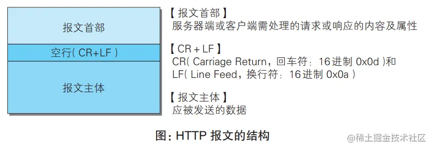 报文:HTTP 通信中的基本单位,由 8 位组字节流(octet sequence)组成,octet 为 8 个比特