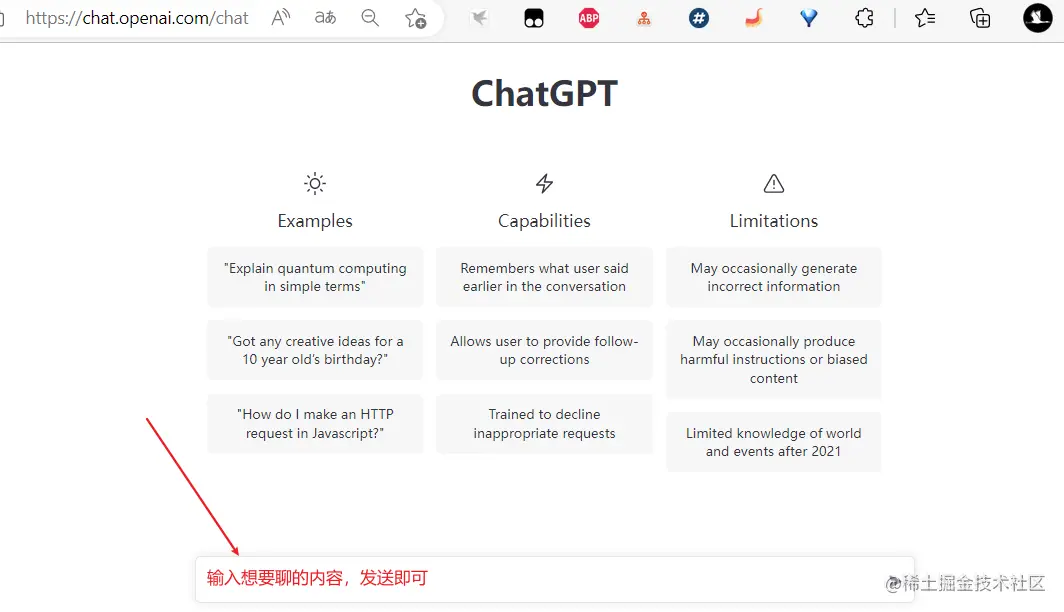 在下图的文本框输入想聊的内容,发送即可,想问什么都行!