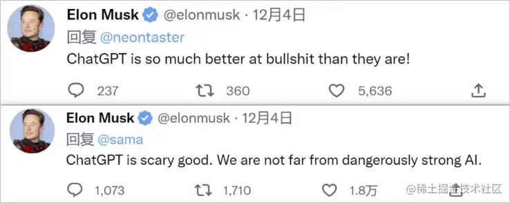 这两天,被一款集写文章,写代码,找Bug、聊天、写歌等多功能的AI对话软件 ChatGPT 刷爆了朋友圈;就连马斯克都亲自出来为其站台,发了多条推特来夸赞它的强大;
