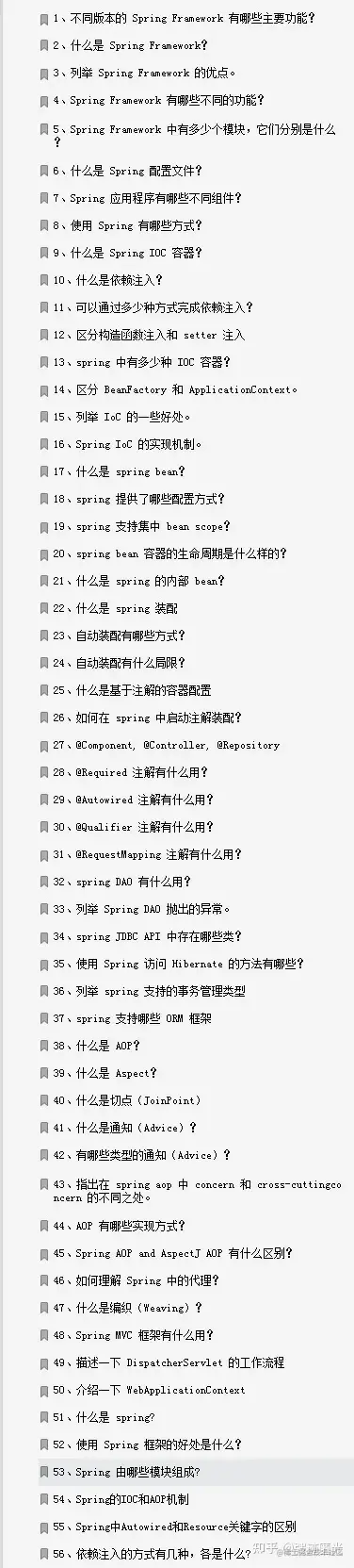 题包括以下二十三个模块: Java 基础篇、JVM 篇、多线程 &并发篇、Spring 篇、MyBatis 篇、SpringBoot 篇、MySQL 篇 、SpringCloud 篇、MyBatis 篇等等~