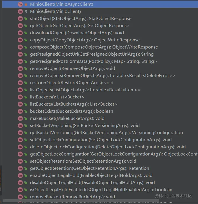 查看MinioClient提供的服务