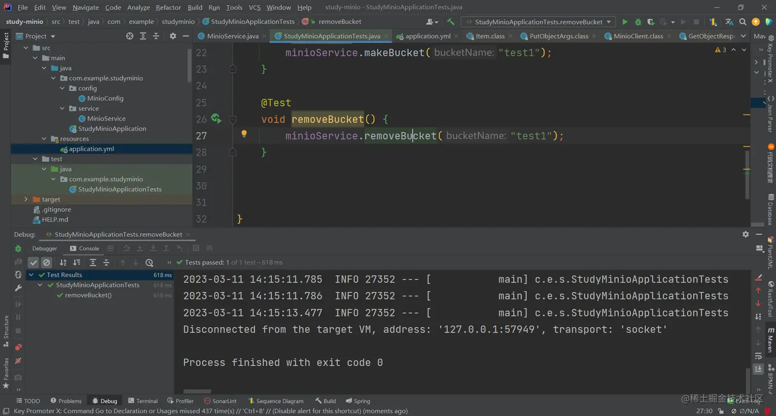 至此测试完毕,剩下的不给大家演示,毕竟minio SDK提供了太多的方法,本文主要是讲集成,有兴趣的同学可以自己去测试,调用。