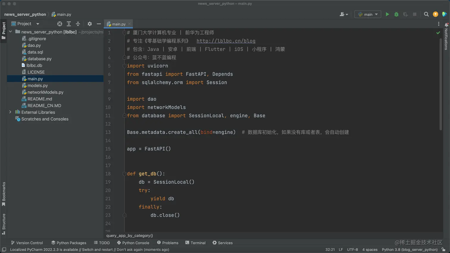 公众号:蓝不蓝编程