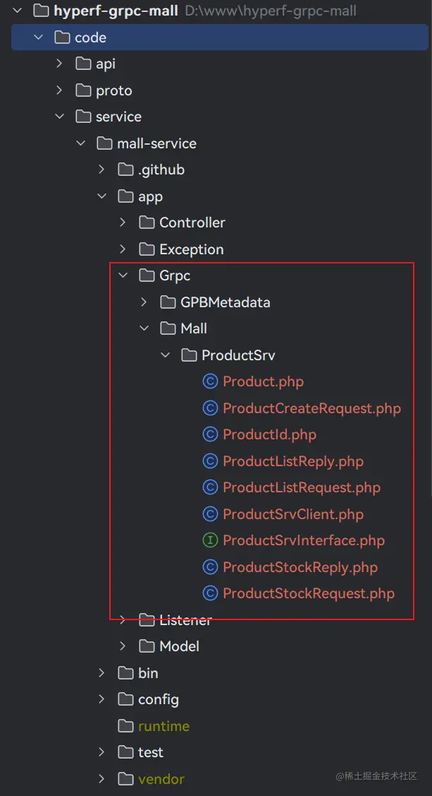 并实现 App\Grpc\Mall\ProductSrv\ProductSrvInterface