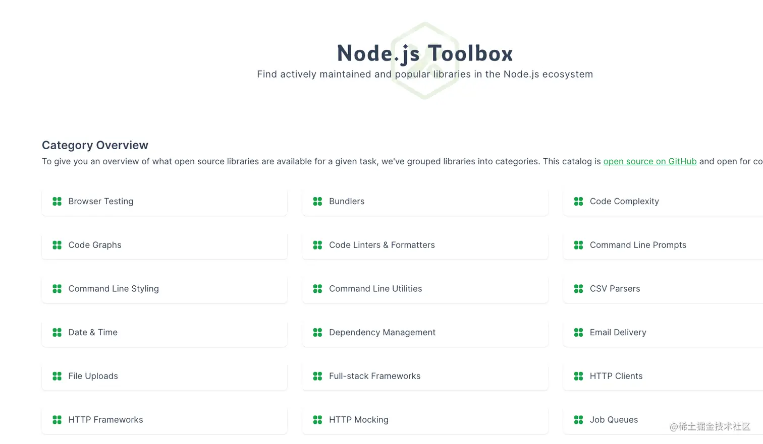 网站分类整理了Nodejs生态流行的工具包