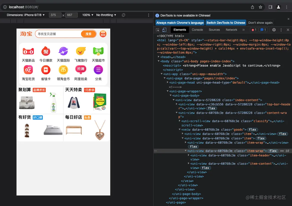 这样我们用uni-app切了一张移动端淘宝的首页,还算完美,估计细节间距还要磨改,因为设计师的眼睛很毒,你这还原度太低了,这里要改,那里要改...,一个卑微的切图工具人,太惨了...