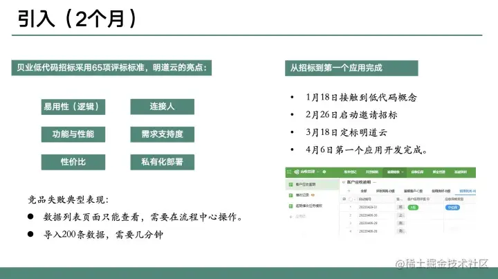 我是从今年1月18号才了解到低代码,3月18号定标,到4月初我们就出了第一个应用,这是我接触整个低代码的过程。从采购、招标到最后用低代码产出第一个应用,我们团队仅有两个人在负责,现在也是属于刚起步的阶段,在这个阶段里,我总结出以下三个需要解决的问题。