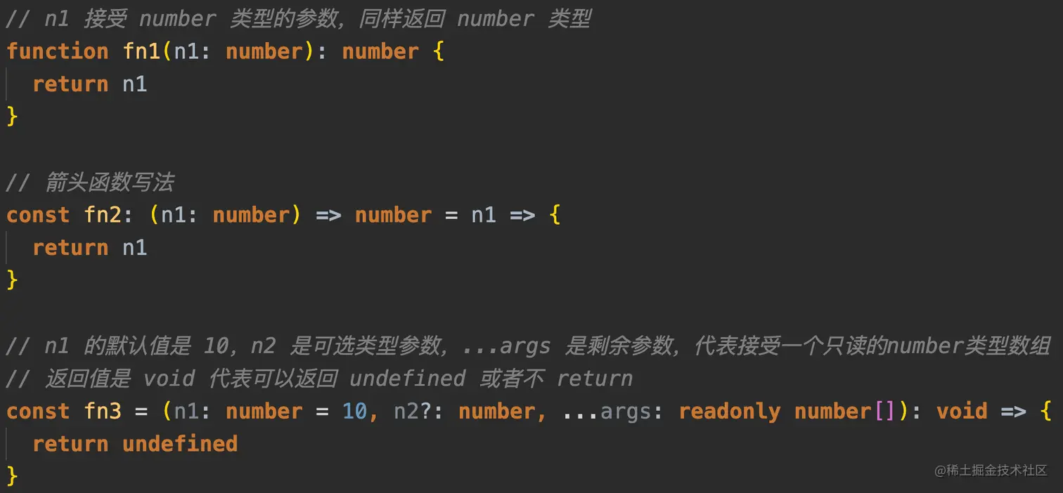 - 同样也可以声明返回值的类型,不过也可以不写让 TS 自动推导