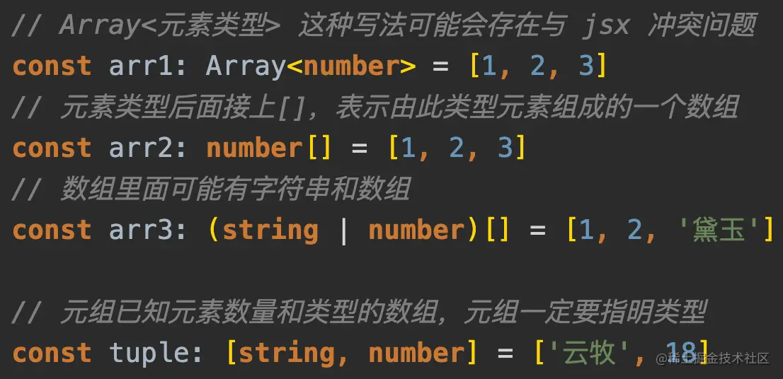 - tuple可以作为函数返回的值,React 的 useState 就是个元组,类似于