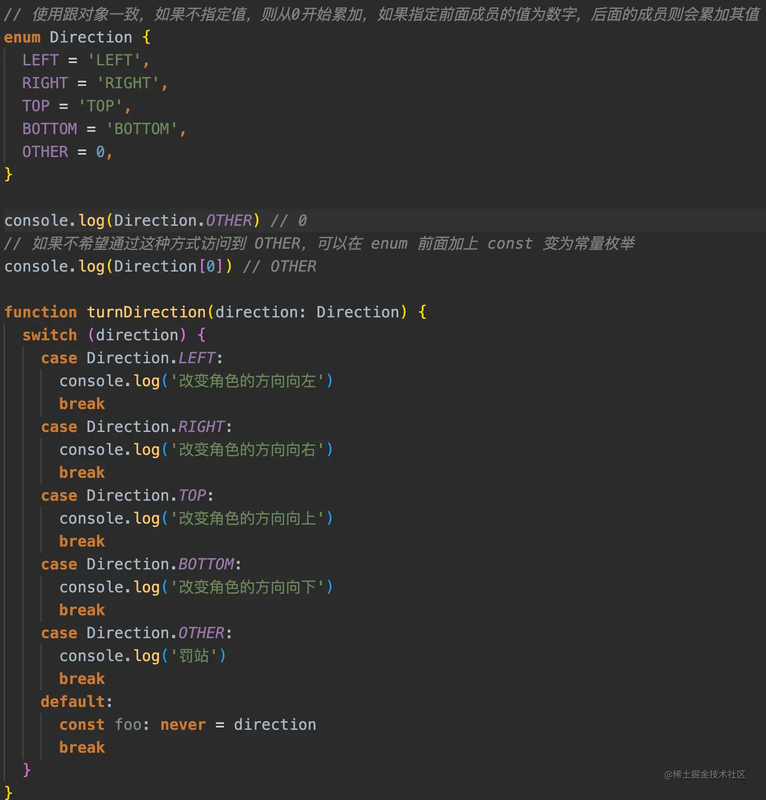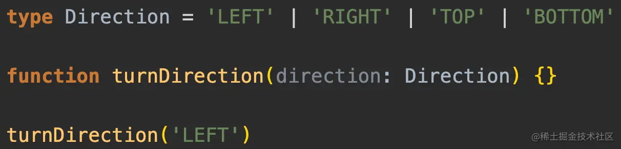 这种字符串的枚举可能使用 type Direction = 'LEFT' | 'RIGHT' | 'TOP' | 'RIGHT'可能会更好点