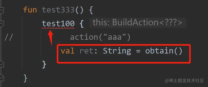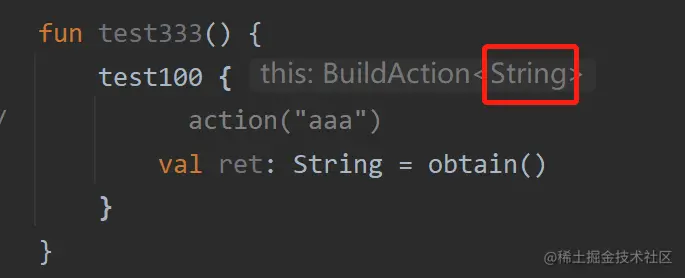 可以看到,上面的截图中不显示指定泛型类型就推断出了test100()方法的泛型为String,buildList{}构建集合同样是这个原理,可以说@BuilderInference注解非常的好用。