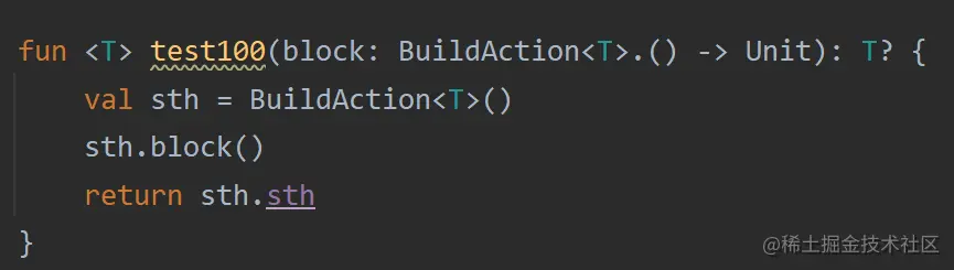 fun <T> test100(@BuilderInference block: BuildAction<T>.() -> Unit): T? {