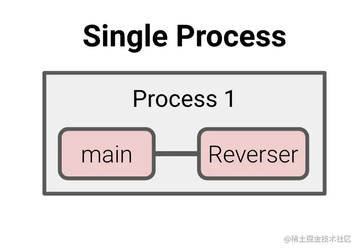 当我们执行go run .时,我们的应用包含所有的组件运行在一个进程中,组件的调用就是Go中的正常的函数调用