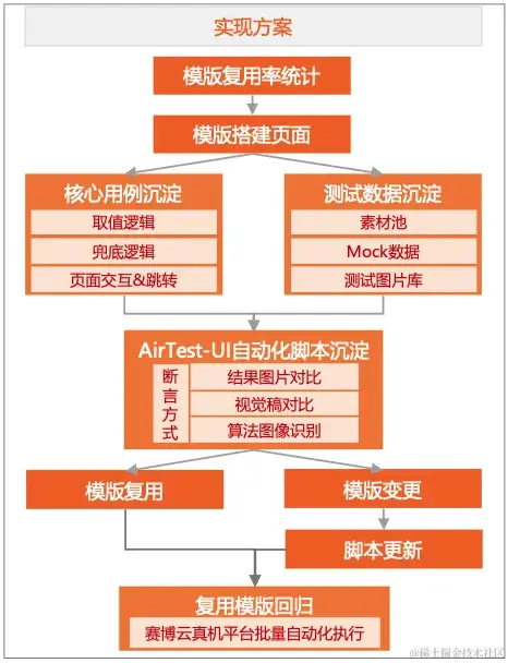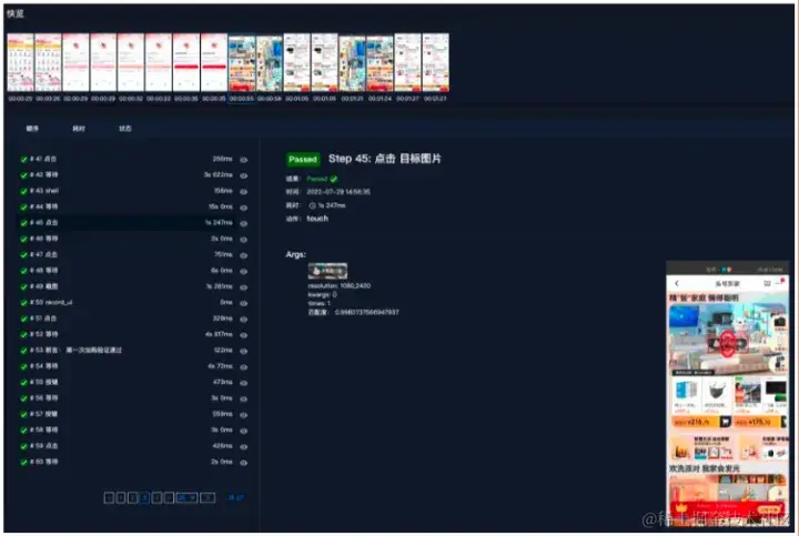 在功能测试环节,我们建设了模版自动化能力,以提升模版回归及会场回归效率。针对高复用率模版,沉淀核心用例和测试数据集,结合Airtest进行UI自动化脚本沉淀,重点验证核心取值逻辑&兜底逻辑&页面交互跳转,最终通过图片对比进行结果断言。当前正在建设页面回归能力,自动识别页面所有楼层模版,并针对楼层自动拼接回归脚本,最终集成到会场发布门禁。
