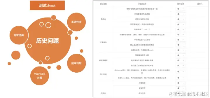 测试check:通过对历史线上问题归纳提炼,总结出5大类测试自检类型,20+条自检项,避免因为漏测而导致的线上问题。