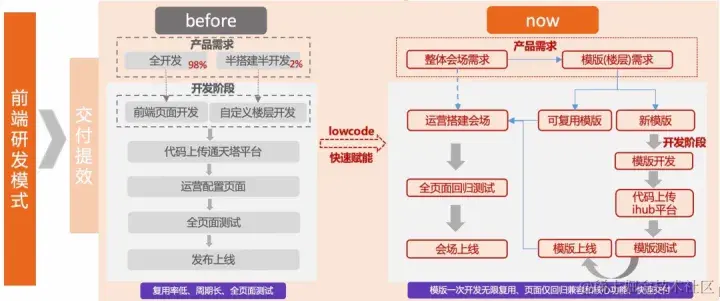 为提升交付效率,前后端研发团队逐步转向低代码,推动了活动搭建模式转变。