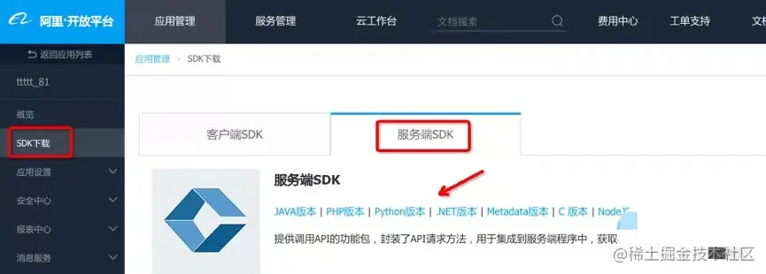 要使用API,必须先下载阿里开放平台的SDK。SDK提供调用API的功能包,封装了API请求方法,用于集成到服务端程序中,获取相关数据使用。从联盟APP 备案网站下的APPKEY信息右侧点击查看就可到阿里开放平台下载SDK。