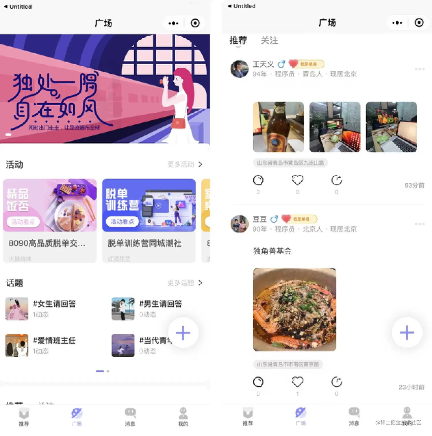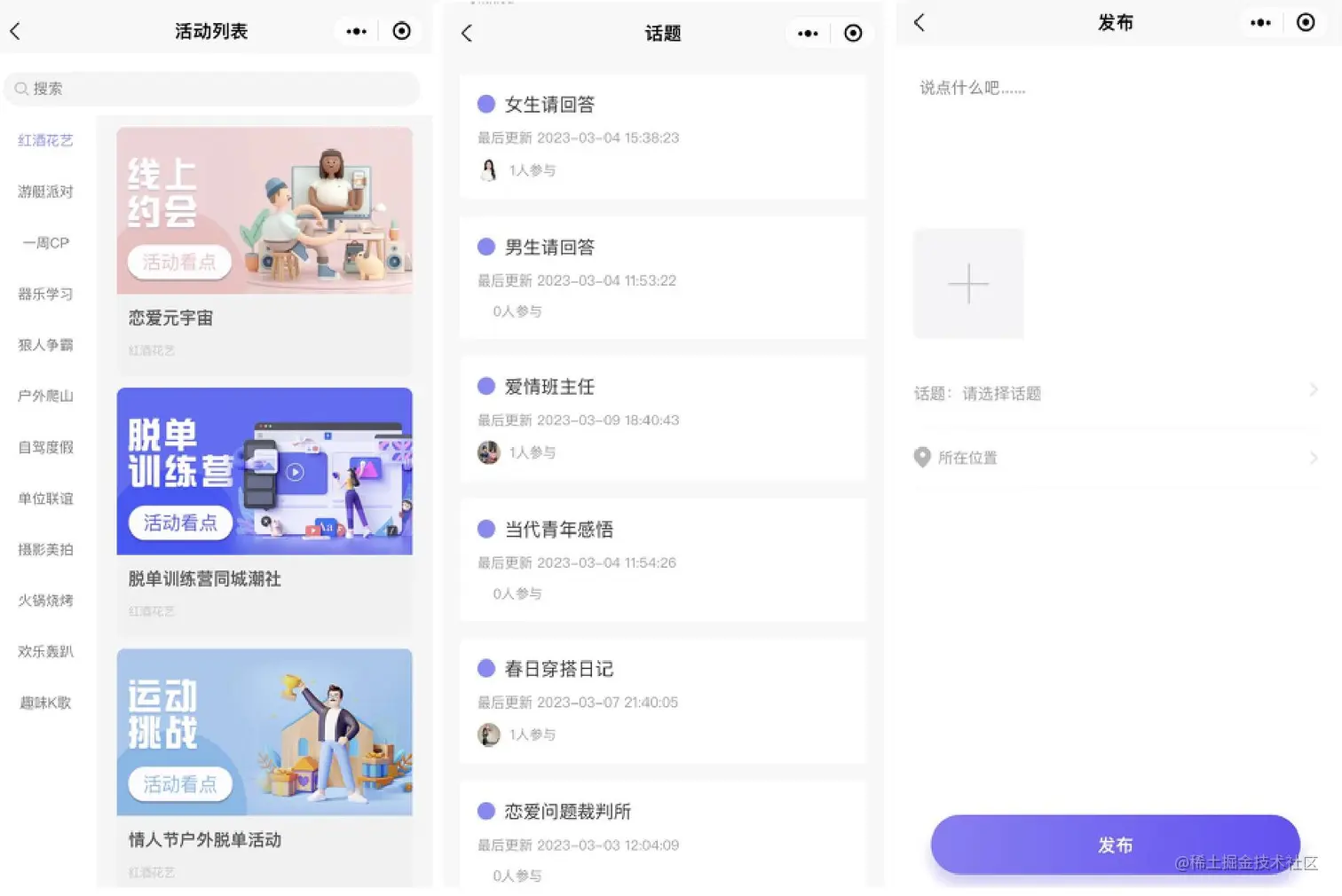 包括了banner、活动、话题、动态和发布动态等操作功能