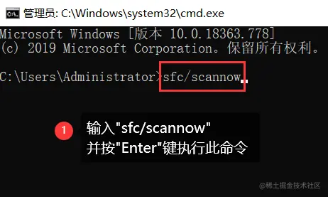 (2)输入 【sfc /scannow】 并按下回车键。这将启动SFC扫描程序,并检查系统文件的完整性。